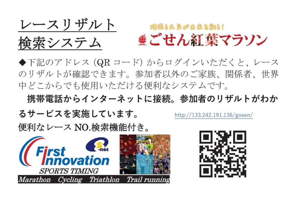 この度は、ごせん紅葉マラソンにご参加いただきまして、誠にありがとうございました。